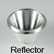 There are two major types of secondary optical part found in flashlight products, they are reflector and collimator. Reflector is a profiled part with reflective surface, the surface is intelligently profiled so as to reflect all the light from the LED to form the required beam angle. The surface of the reflector is being made reflective with a process called vacuum metalizing and Kaper has in-house production facilities to do vacuum metalizing so complete control of quality reflector can be guaranteed.